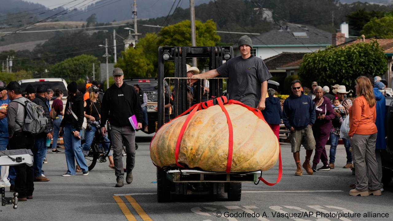 ХЭЛФ МУН БЭЙ – 13 октября 2025 года на 52-м ежегодном World Championship Pumpkin Weigh-Off в Хэлф Мун Бэй (Калифорния) инженер из Санта-Росы Брэндон Доусон завоевал первое место с гигантской тыквой весом 2346 фунтов (1064 кг). Это его первая победа после второго места в 2024 году — всего на 6 фунтов от лидера.